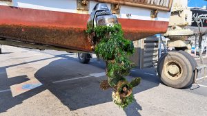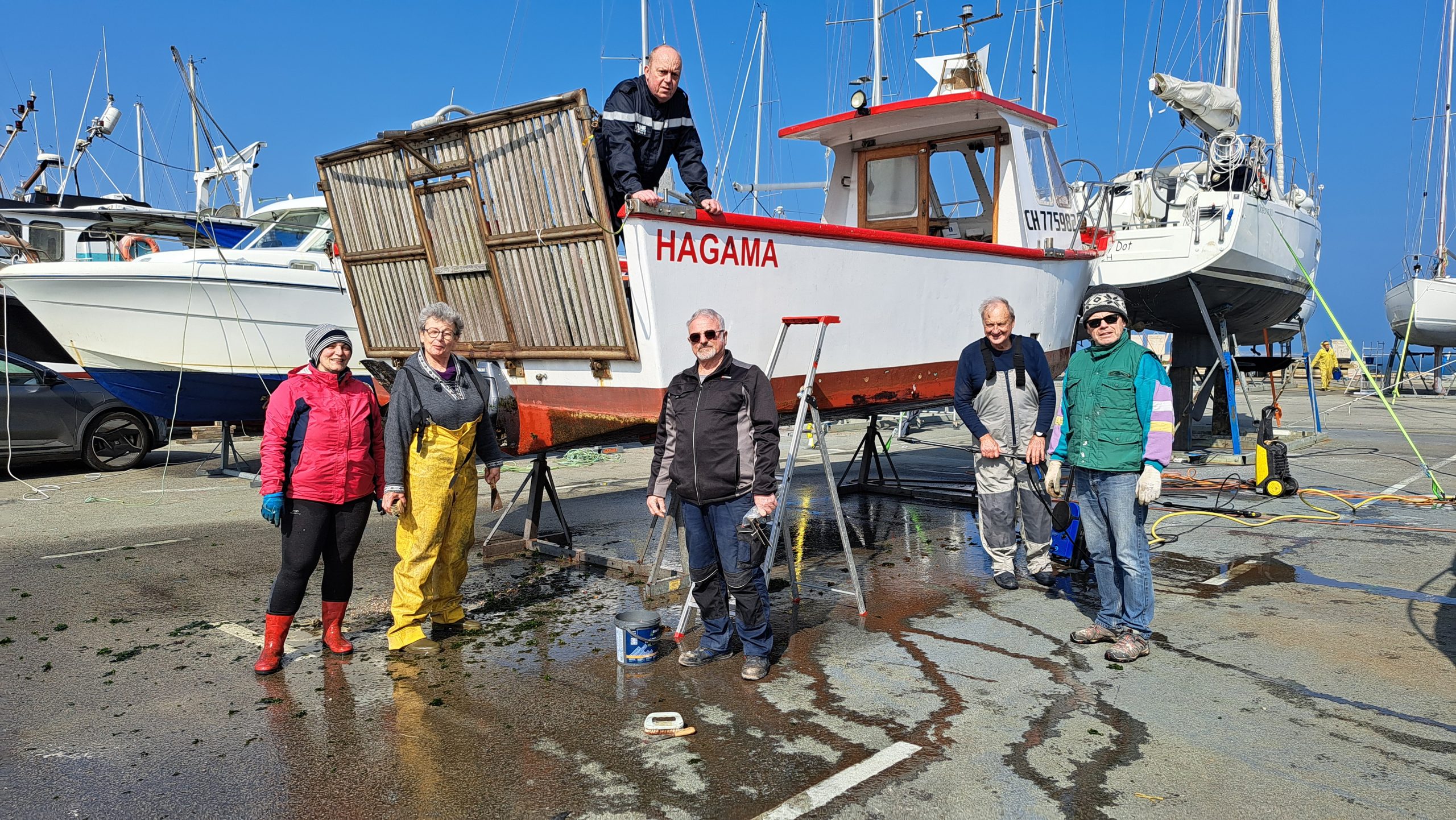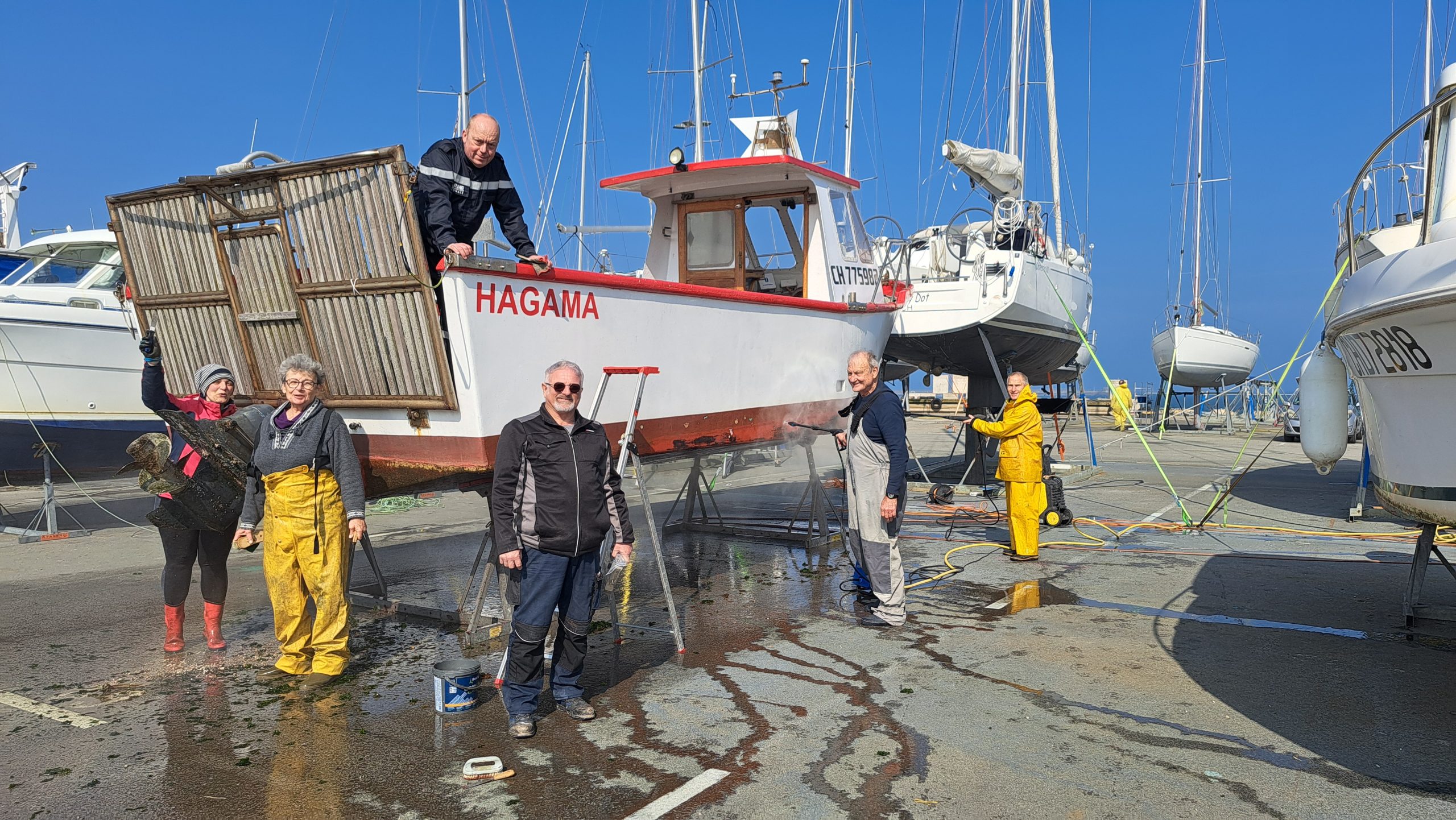 Hagama a regagné sa place au port Chantereyne après un mois au sec pour travaux : maintenance moteur, réparation de la plateforme qu’il a fallu ressouder et renforcer, les points d’osmose coté tribord ont été grattés et mastiqués, le tableau électrique refixé, l’antifouling passé, les équipements de sécurité vérifiés, etc…